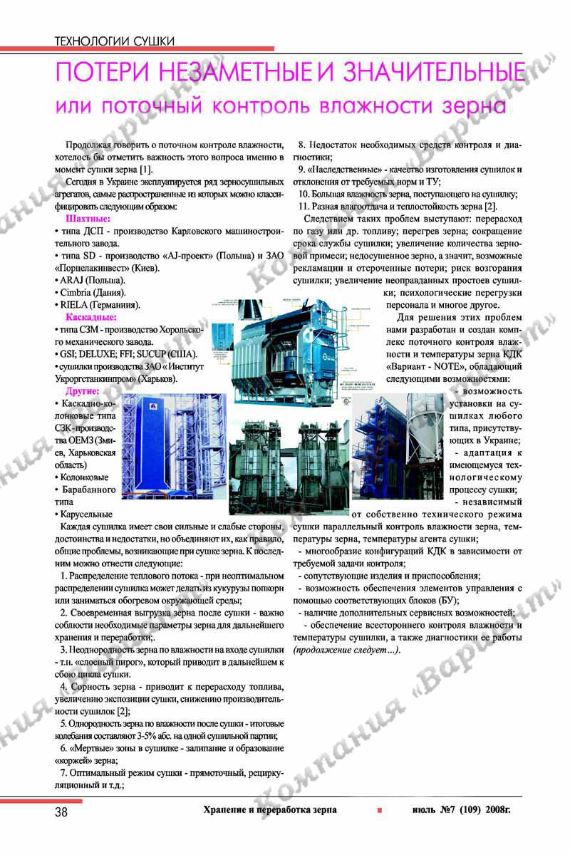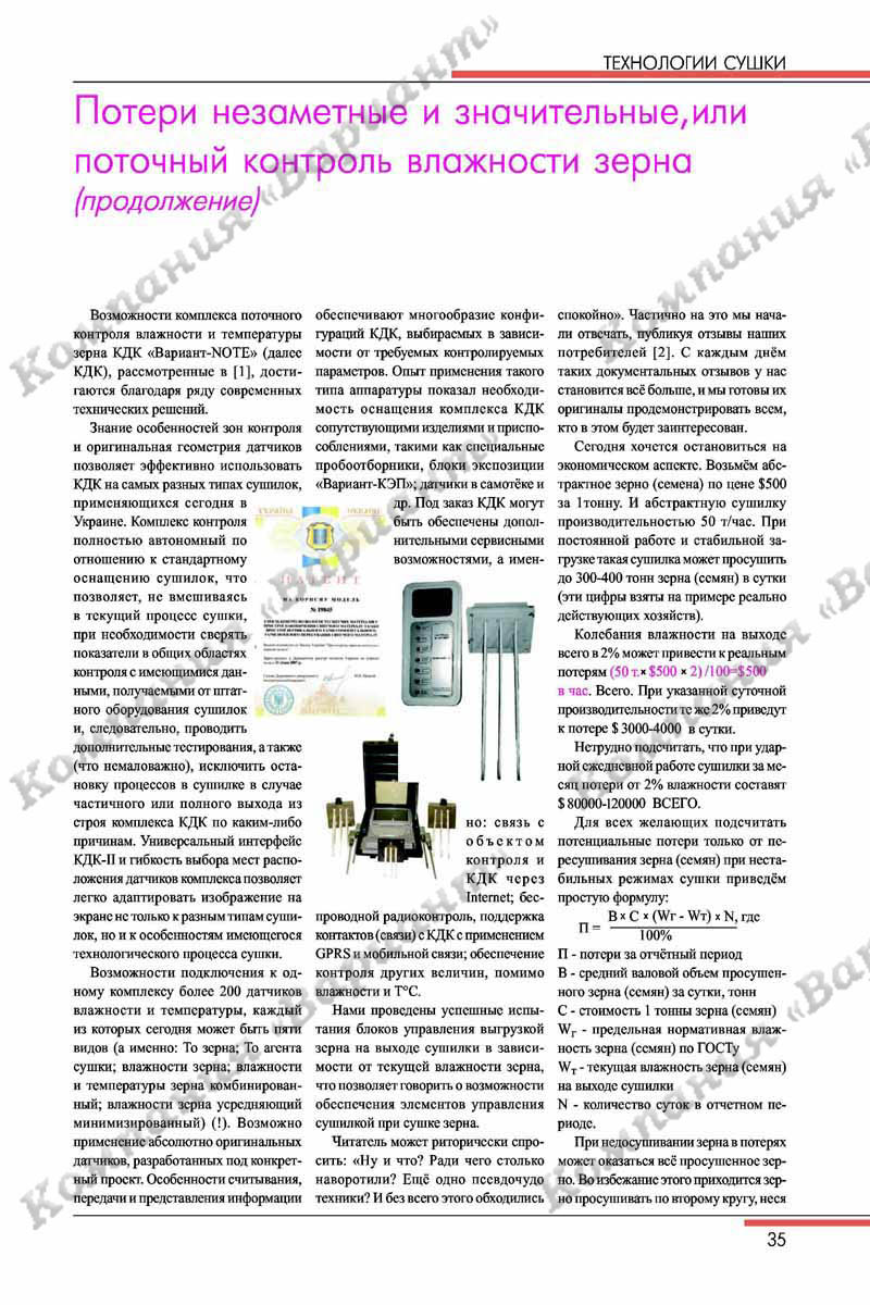 | Групою наших співробітників отриманий Патент України N19845 на спосіб контролю вологості сипких матеріалів, що поширює свою дію в т. ч. на сушарки, бункери й системи зберігання і транспортування зернових та інших органічних сипких продуктів.